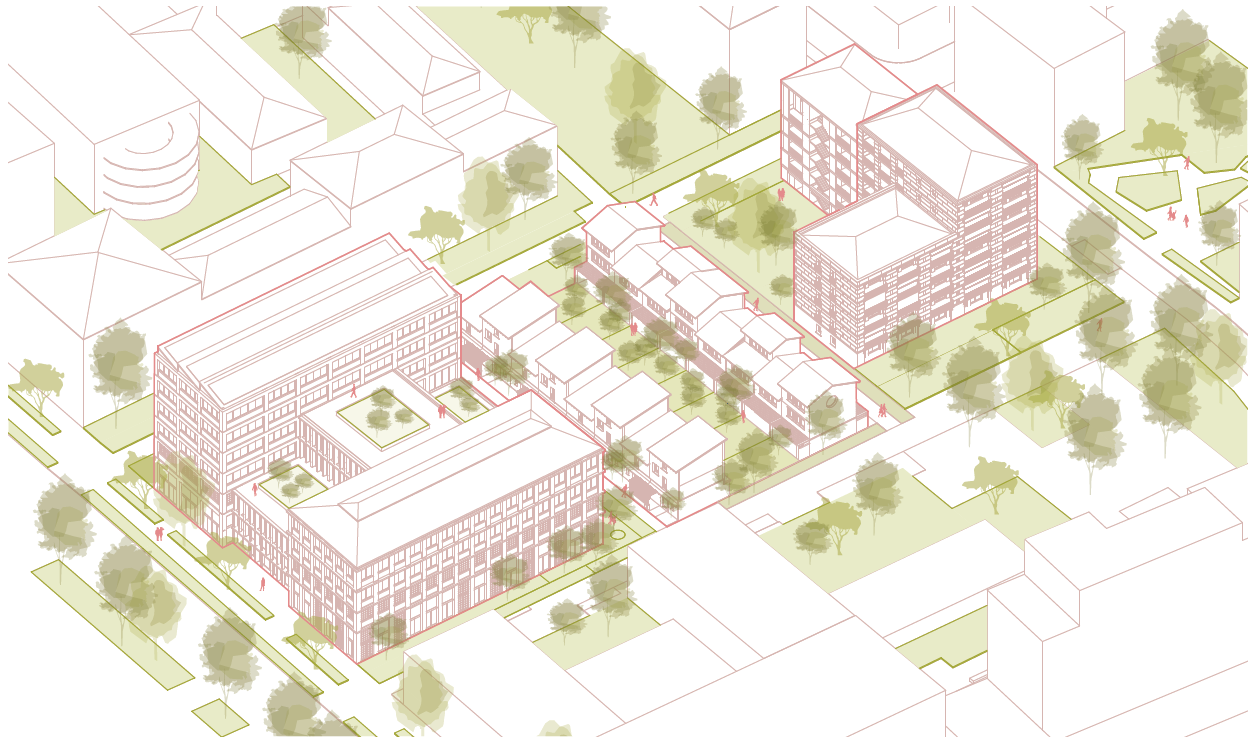 Ce projet contribue également préserver et prolonger l’esprit du faubourg, qui constitue l'identité architecturale forte du quartier de la Saulaie, en installant une diversité de programmes au sein de l’îlot où coexistent logements, activités économiques, bureaux, commerces, petits jardins.
